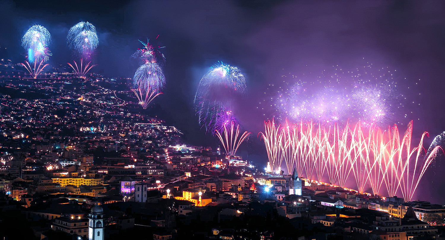 À meia-noite de 31 de dezembro, a baía do Funchal explode em luz e cor. O espetáculo pirotécnico, reconhecido por registos mundiais, utiliza dezenas de postos de lançamento distribuídos por terra, cais e mar. Ver da terra ou do mar, a bordo de um barco, é uma das experiências mais memoráveis da Madeira nesta noite.